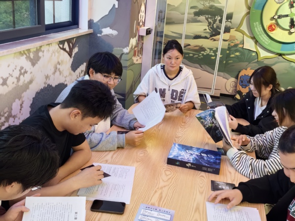 “法话西游”体验馆创新融合《西游记》经典IP与法治文化,打造了多个主题普法区域。在“法律宝库”展区,同学们通过剧情化任务学习法律发展历程和基本知识;在“警钟长鸣”展区,借助“吸毒前后人脸变化”的模拟科技,同学们直观感受毒品对身心的危害,强化拒毒防毒意识。活动还设置了深度沉浸式教学环节。同学们分组参与法治主题剧本杀《光与暗的路口》,围绕校园欺凌主题展开推理与思辨;在模拟法庭环节,同学们扮演审判员、公诉人、被告等角色,真实再现“餐饮企业使用过期原料”典型案例,在实景演绎中理解食品安全相关法律法规的现实应用。