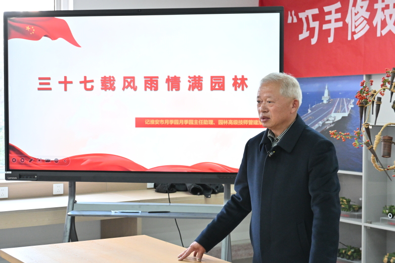 活动特邀原淮安市月季园主任助理、园林高级技师曾建淮担任主讲。曾老师深耕园林领域三十余载,曾获“淮安市劳动模范”、“江苏省技术能手”等多项荣誉。活动现场,曾建淮老师先以生动案例系统讲解了插花艺术的历史渊源、文化内涵与技法精髓。随后又现场示范花枝修剪、花材固定、色彩搭配等实操技巧,手把手指导学生根据花材特性设计造型。他执着专注、一丝不苟的态度感染了在场的每一名同学。