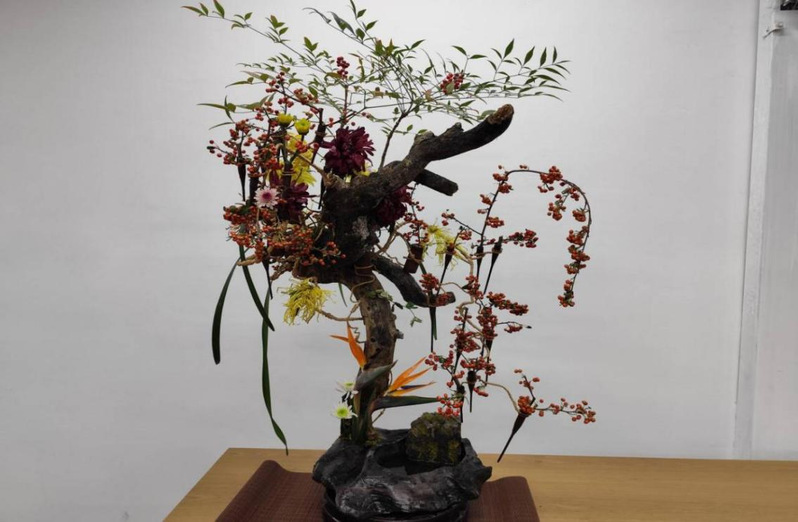 学生们在曾老师的指导下挑选花材、构思布局、修剪枝叶,让原本普通的花枝在指尖绽放出独特韵味。