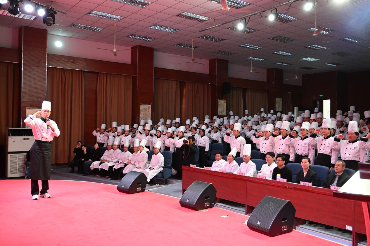 随后,中国烹饪大师、江苏工匠、酒店学院张胜来教授以“新时代、新技能、新梦想——工匠成长之路”为主题,结合自身二十几年的丰富阅历,生动讲述了一名工匠的坚守与突破。他的分享深入浅出,情感真挚,让在场学子对“精益求精、守正创新”的工匠精神有了更深刻的体悟,也为他们的职业发展树立了鲜活榜样。