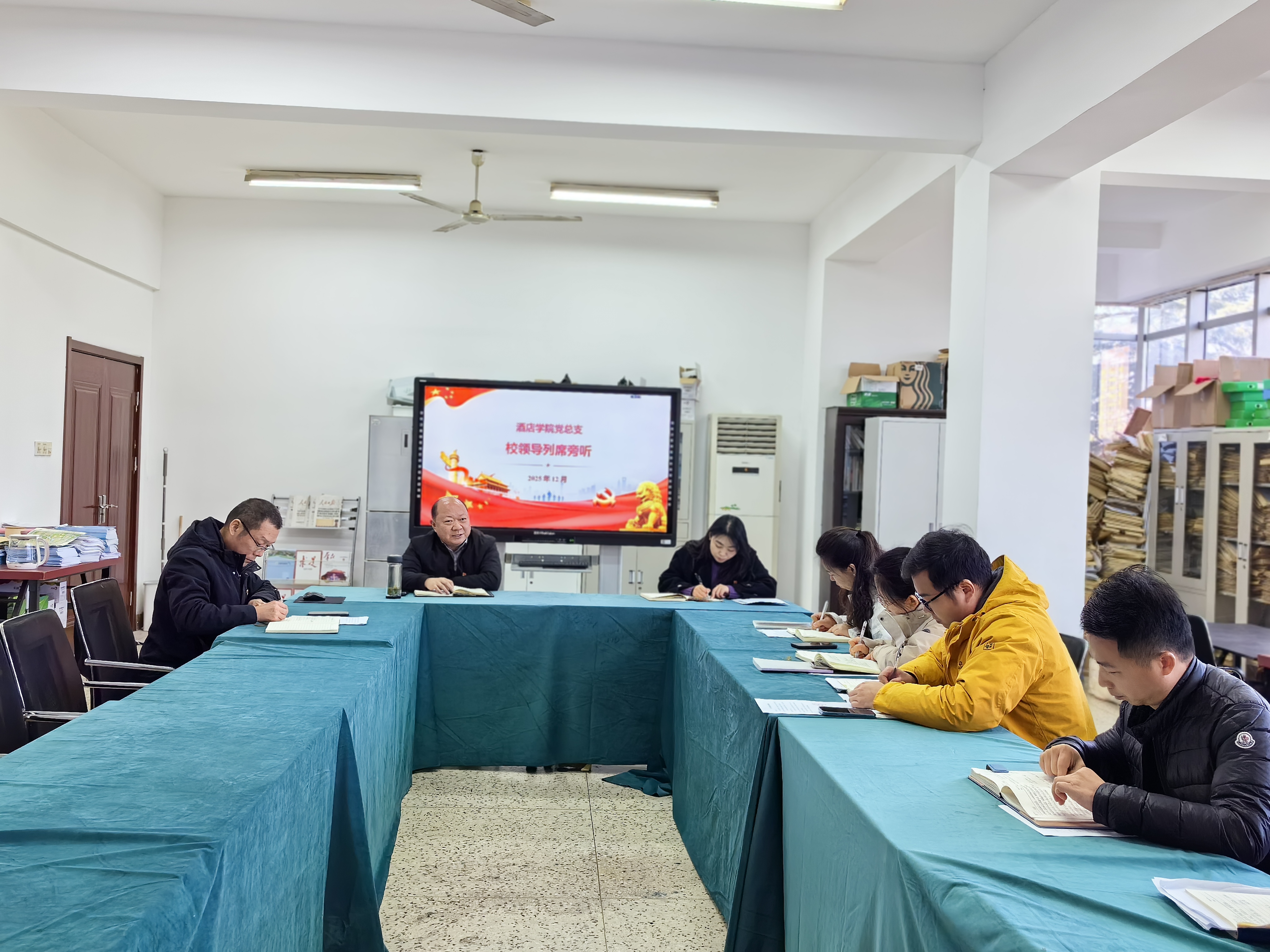 12月15日,酒店学院党总支召开理论学习中心组学习会,校长安进列席旁听指导。学习会由学院党总支书记拾以超主持,二级中心组全体成员参加学习。